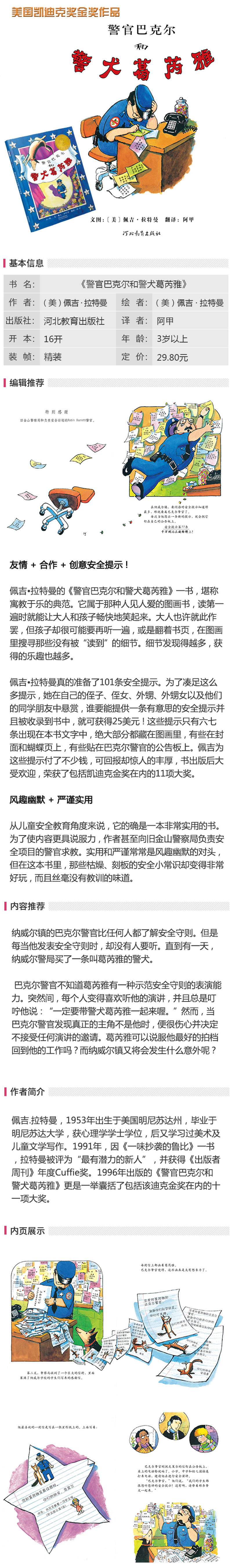 佩吉·拉特曼为著名的作品有《警官巴克尔和警犬葛芮雅》和《晚安,大猩猩》。其中《警官巴克尔和警犬葛芮雅》获得1996年凯迪克奖,同时被美国全国教育协会列为教师推荐的100本童书之一。